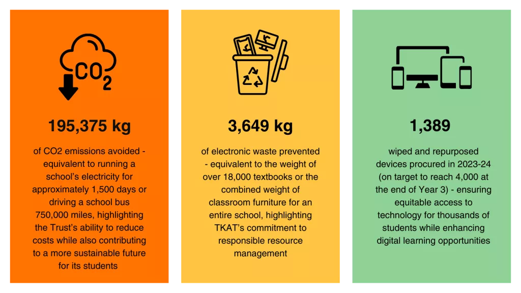 The Kemnal Academies Trust (TKAT) formed a key retainer partnership with Reconome to provide high-quality refurbished tech on an ongoing basis – ensuring schools can access affordable, reliable devices while also advancing their sustainability goals.